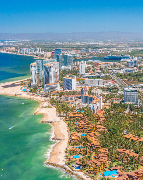 • Dónde te alojarás: Las opciones van desde amplios complejos turísticos frente al mar, como el Marriott y Velas Vallarta, hasta lujosos condominios en rascacielos (como Shangri-La) que ofrecen una enorme cantidad de metros cuadrados.
